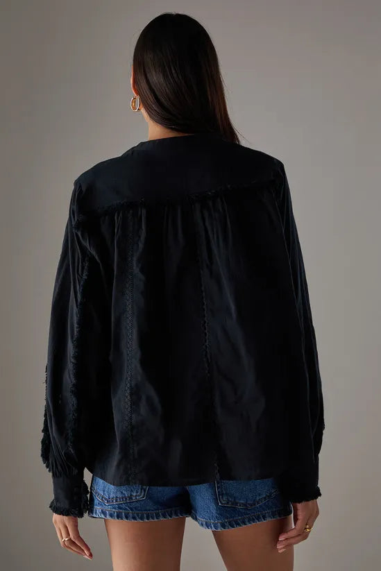 HCD Cotton Lace Trim Insert Boho Blouse